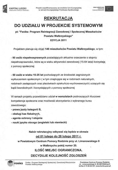 PFRON Powiat Wałbrzyski Powiatowe Centrum Pomocy Rodzinie w Wałbrzychu Wrocławski Sejmik Osób Niepełnosprawnych Magazyn Integracja Portal organizacji pozarządowych