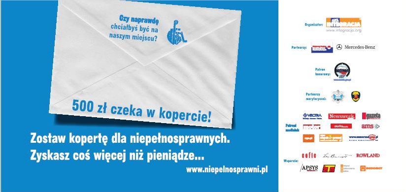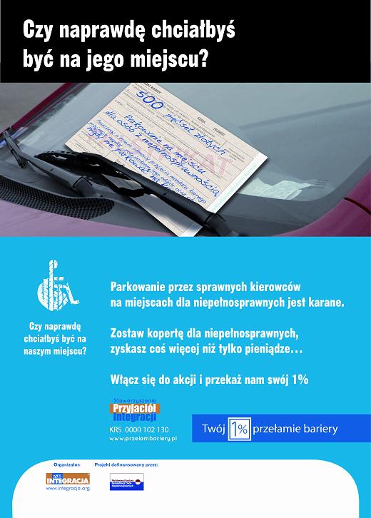 Bezprawne parkowanie na kopercie – to się nie opłaca! Kampania Parkingowa 2009 2 kwietnia 2009 r., ruszyła kolejna edycja ogólnopolskiej Kampanii Parkingowej - „Czy naprawdę chciałbyś być na naszym miejscu?” organizowanej przez Stowarzyszenie Przyjaciół Integracji. Akcja uczy Polaków, że zajmowanie miejsc parkingowych osobom z niepełnosprawnością znacznie ogranicza ich swobodne poruszanie się i funkcjonowanie w społeczeństwie.